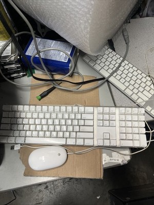 Comes with Apple white mechanical USB keyboard, mouse and power cord.