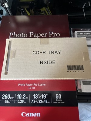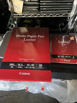 Comes with Canon 50-Sheet 13x19" photo paper and 5-sheet 8.5x11" photo paper.
