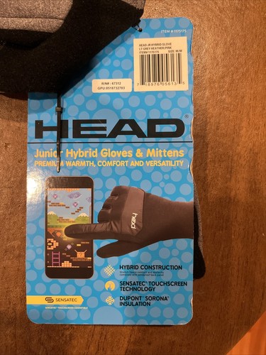 HEAD JR Hybrid Touchscreen Gloves Mittens Grey Heather Pink Medium Age 6-10