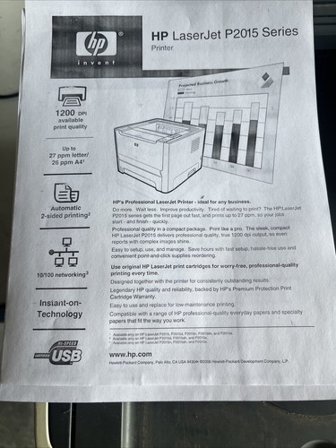 HP LaserJet P2015dn Monochrome Duplex Network Laser Printer CB368A - With Toner