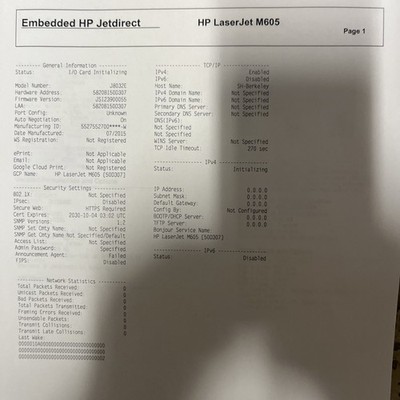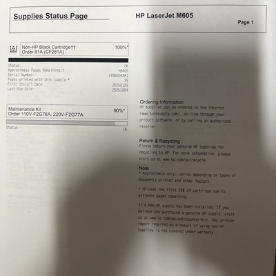 HP M605N LaserJet Enterprise Monochrome Printer E6B70A 31578 pages