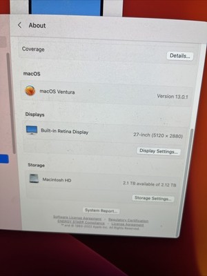iMac 5K 2017 i7-7700k 16GB Ram 2TB Fusion Radeon Pro 575 Ventura