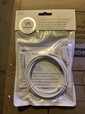 The Cable Matters 101009-6 6ft Mini Display Port to HDMI HDTV Cable in white is a versatile and high-quality cable designed to connect your Mini DisplayPort-equipped devices to HDMI-enabled monitors or televisions. With a cable length of 6 feet, it offers ample reach for comfortable setup. This cable allows you to connect up to 2 additional monitors, providing a seamless and efficient multi-monitor setup for your computing needs. Made by Cable Matters, a trusted brand in computer cables, this cable is a reliable and essential accessory for enhancing your workspace or entertainment setup.