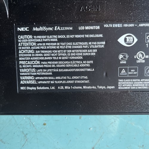 NEC MultiSync EA223WM-BK - 22" LED Monitor with Speakers - w/ VGA & POWER CORD