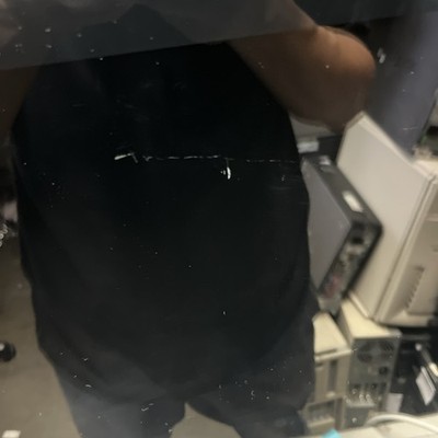 There is a small scratch area on the display. Not that visible when the monitor is on.