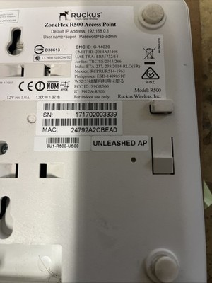 RUCKUS ZoneFlex R500 Series Unleashed AP Wireless Access Point 9U1-R500-US00