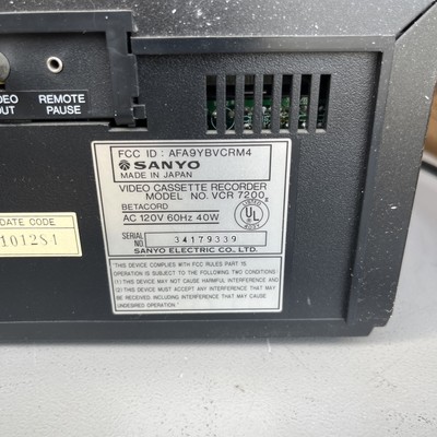 Sanyo VCR7200 Beta Hi-Fi VCR Video Cassette Recorder BETA Tape Player - Tested
